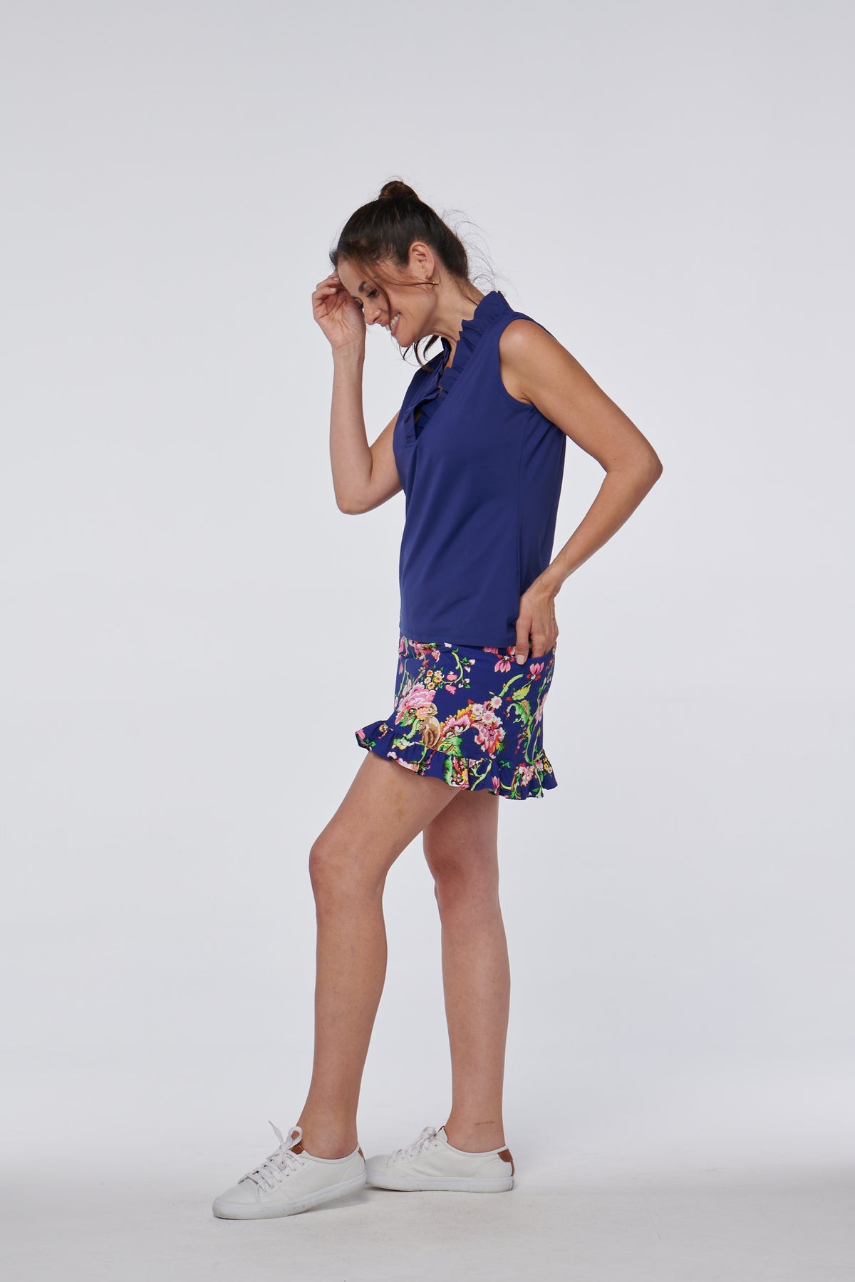 Radiate seamless refinement in our activewear tops, crafted for premium movement and a flawless fit. Feel the gentle caress of the ocean breeze as our breathable fabric keeps you cool and dry, ensuring you stay comfortable whether you’re swinging your shots on the golf course or enjoying a leisurely lunch date by the sea. Say goodbye to sweaty stains and hello to endless summer fun with our tropical-inspired activewear tops.